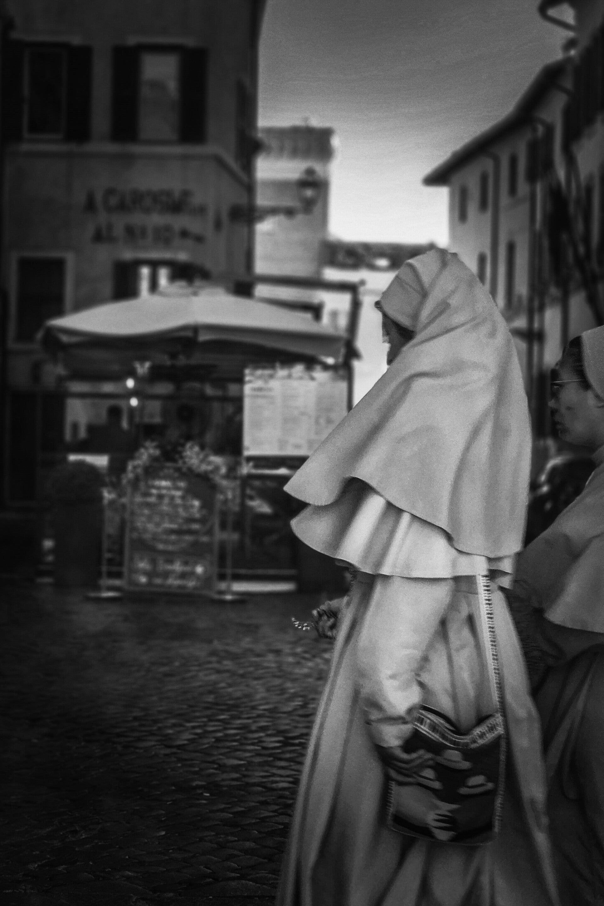 Si je devais choisir qu'un seul cliché de la collection, ce serait "Sorelle di Roma". Particulièrement puissante, l'essence de la beauté réside dans le mouvement de la tenue d'une soeur religieuse apostolique alors emportée par le vent dans les rues de Rome.